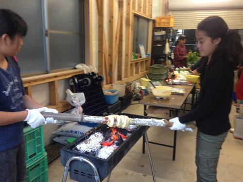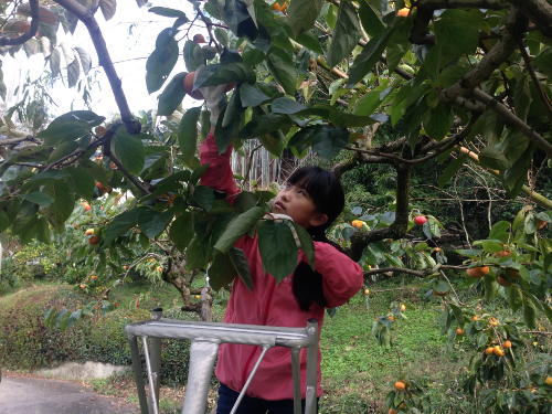 柿の収穫・竹切り・タマネギの植え付け・バームクーヘン作りをしました。