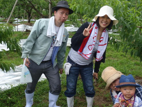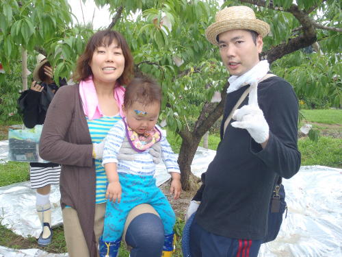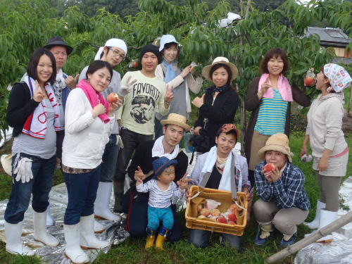 みんなで集合写真だ! 美味しそうだね 楽しかったね。 桃かじってるの誰? おお〜大きな桃だ!