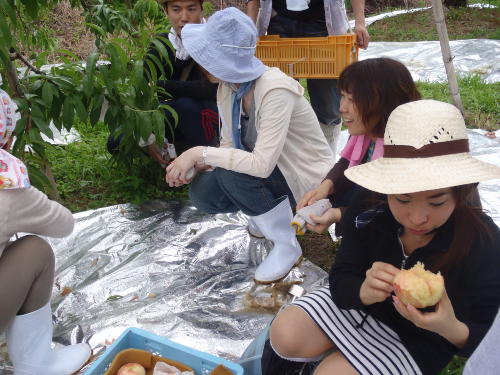 みなさんと楽しい桃狩りの体験をしました。
