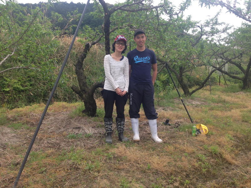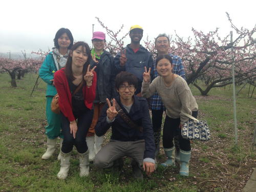 桃の摘果作業や袋かけなどを手伝いしてくれました。