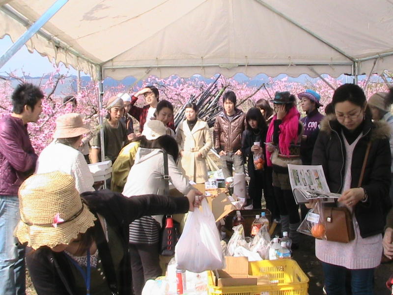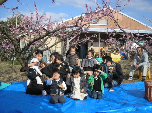 花が綺麗でしたね 太田さん夫婦 美味しい ゆっくん 羽間くん 高橋さん夫婦 桃畑にて