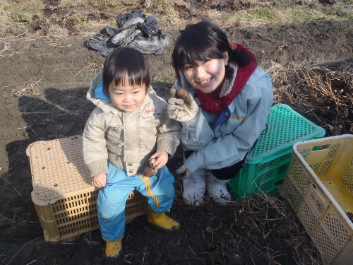 初日は、白菜や大根の収穫体験や袋つめ作業をしました。
