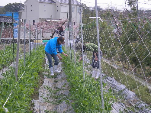 昼からは、少し桃の花摘みをした後に、野菜の畑へ移動