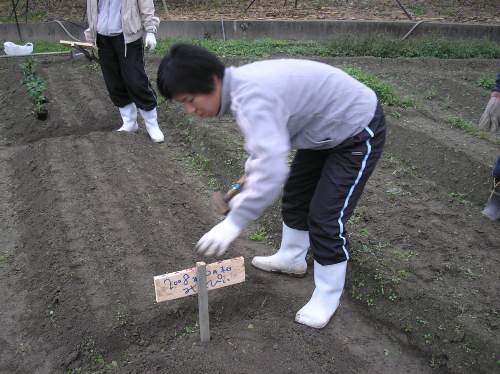 絵を描いたり文字を記入して畑に立てます