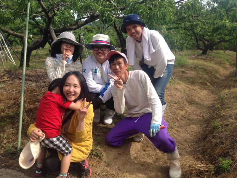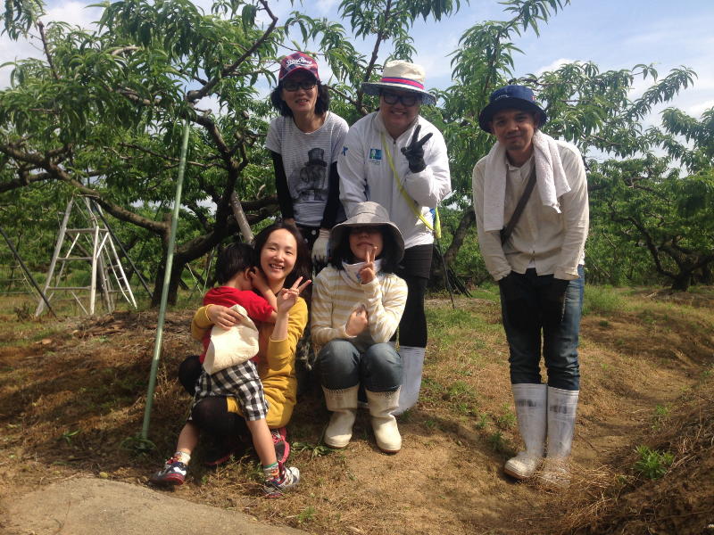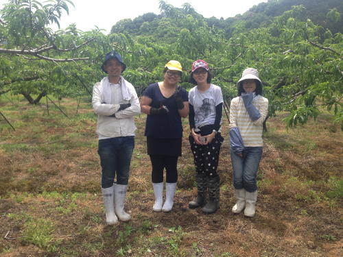 桃の摘果作業や野菜のお手伝いしてくれました。