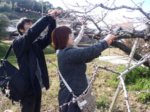 最後に桃の花摘み体験をみなさんにやってもらいました。