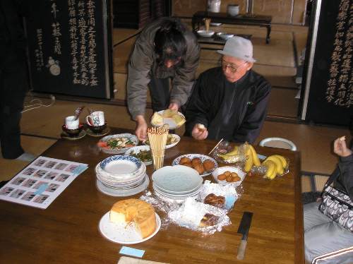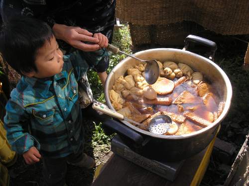 その後、昼食では、温かいおでんやみなさんが持ってきた