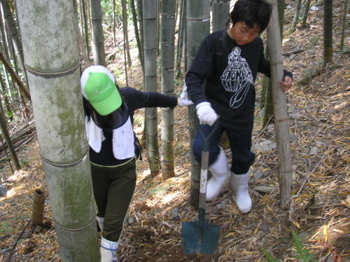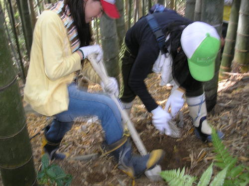 さて昼からは、タケノコ堀りです。