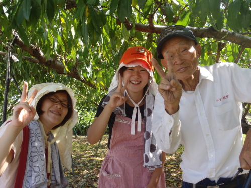 隣の農家のおじいちゃんも一緒に写真を撮りました。