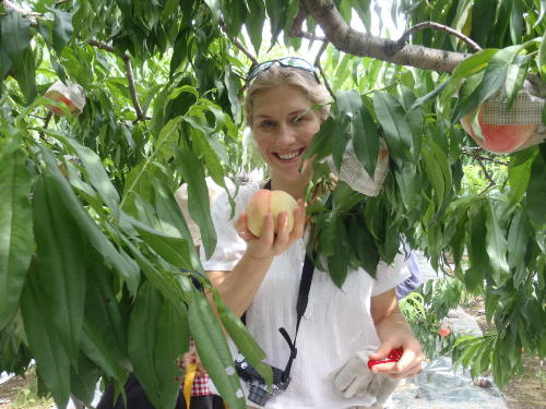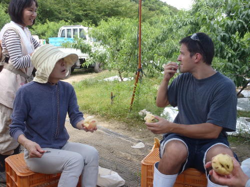 土日限定の桃狩りですが英会話を教えている