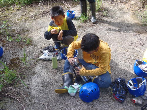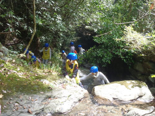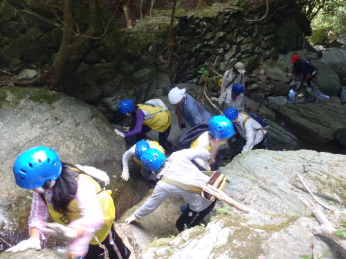 昼食後、沢登り体験です。今度は僕が指導(インストラクター)を先頭に