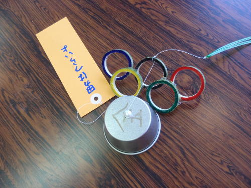 今年はオリンピックの年であったので五輪の輪を竹で作り