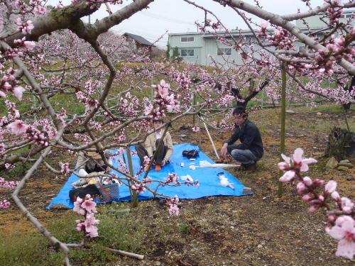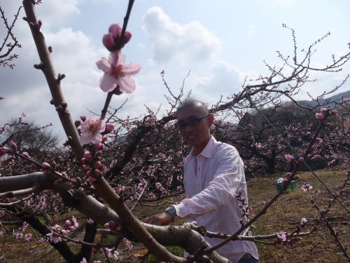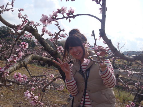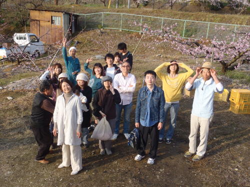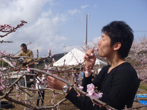 桃の花摘みを体験してもらい、桃ができるまでを説明したり