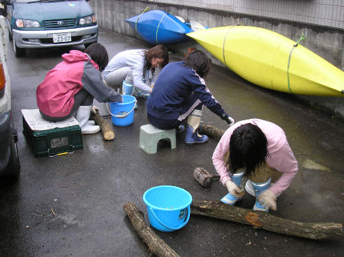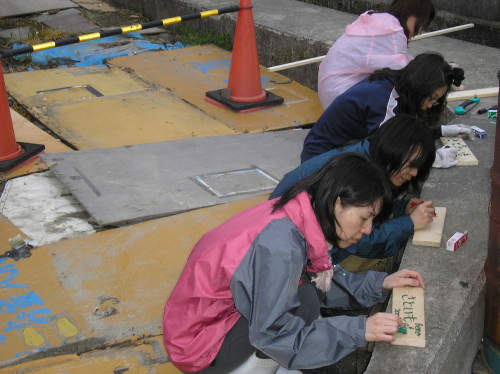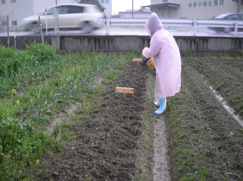 山を下りて、手作り看板を作りみんなで里芋植えを しました。