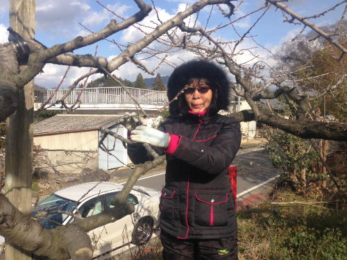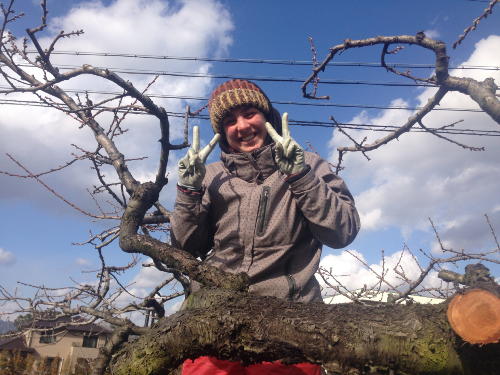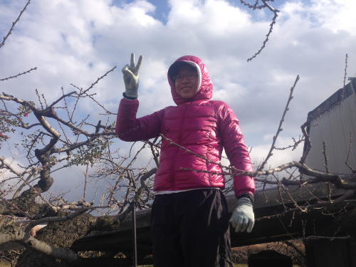 桃の摘蕾作業や肥料まきを手伝ってくれました。